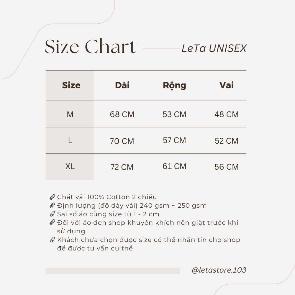 Nhắn tin ngay cho Leta để được tư vấn size chuẩn nhất bạn nhé!